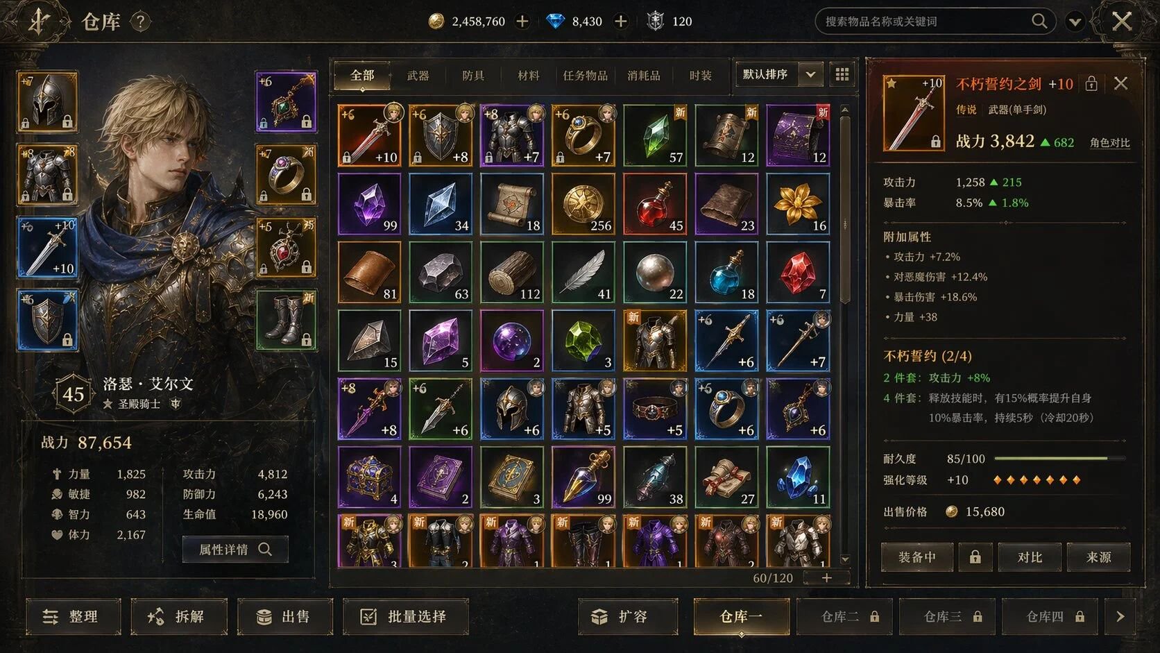 再到电脑端类型的这种横屏类的游戏,甚至让他做了一个角色升级页面,以及战斗画面、地图界面等等。 你看到他这些道具、这些装备,