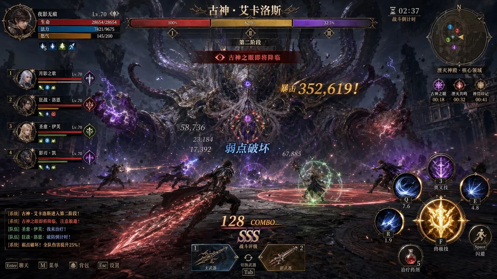 这些战斗画面中应该出现的元素包括队友角色,进度信息,敌方血条,暴击消耗的点数,大招,以及其他相关的内容,相当细节。